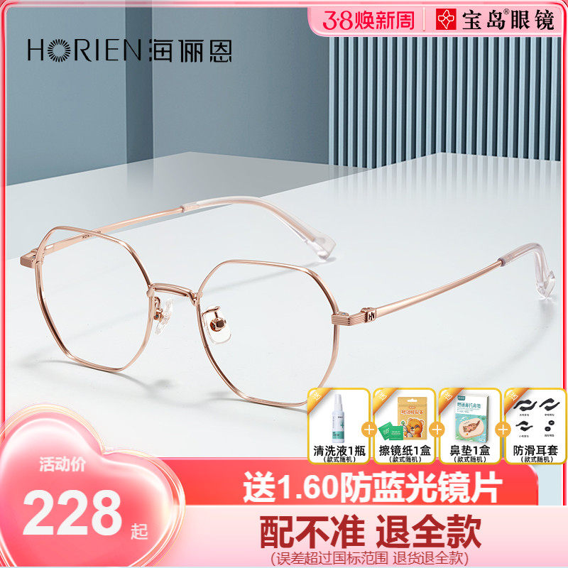海俪恩近视眼镜框女可配度数金丝多边形素颜眼镜框架防蓝光眼镜架