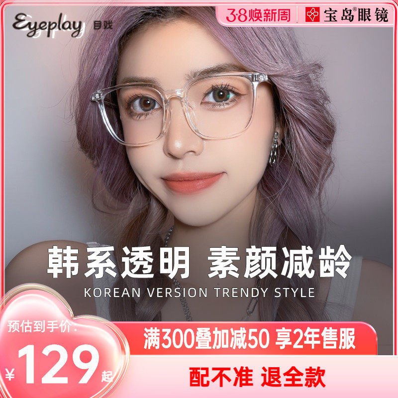 目戏素颜眼镜框架女网上配近视眼镜可配有度数防蓝光高级感透明