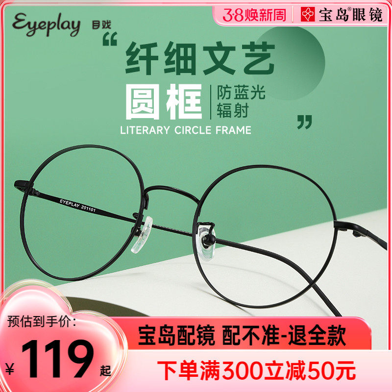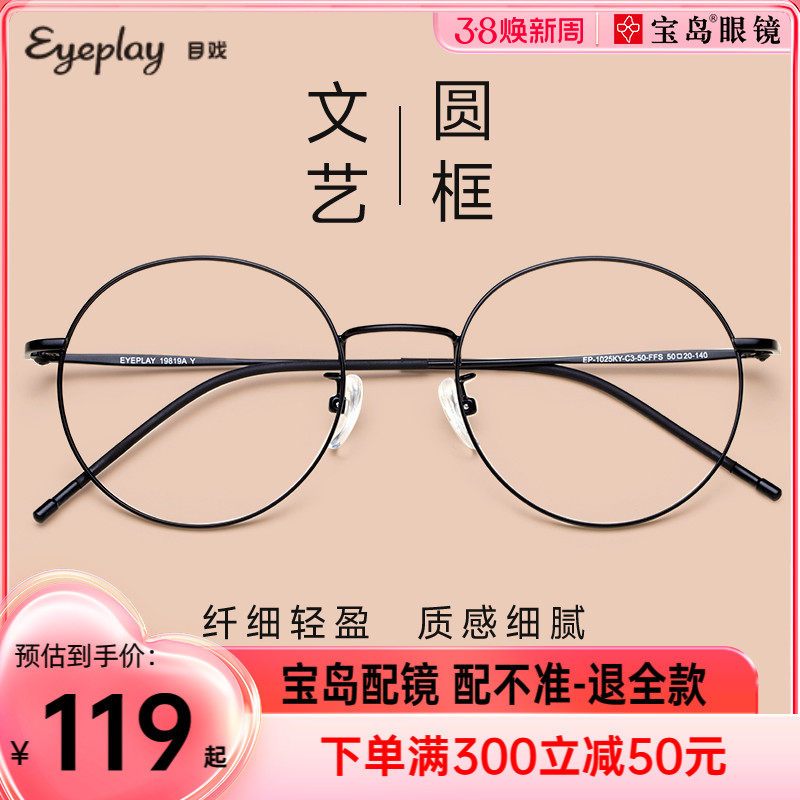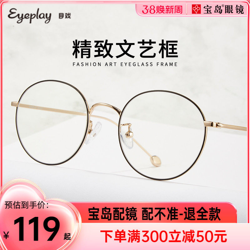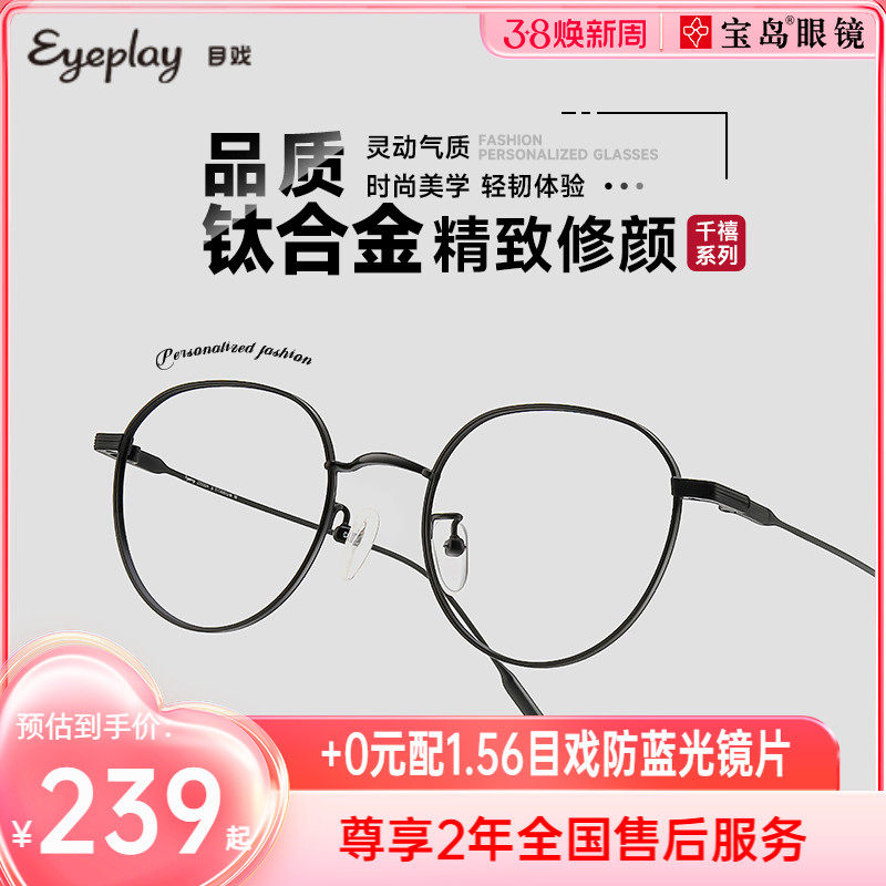 目戏网上配近视眼镜框女可配度数细框防蓝光圆框眼睛男款宝岛1025