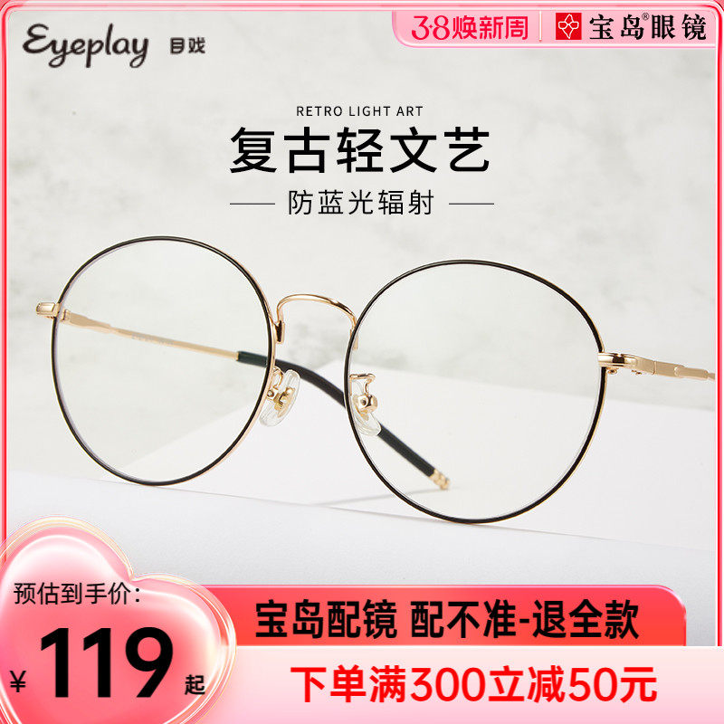 目戏防蓝光辐射眼镜护眼无度数平光镜文艺圆框眼镜近视可配度数