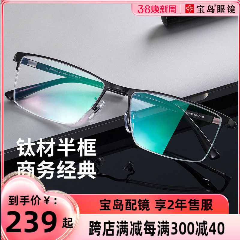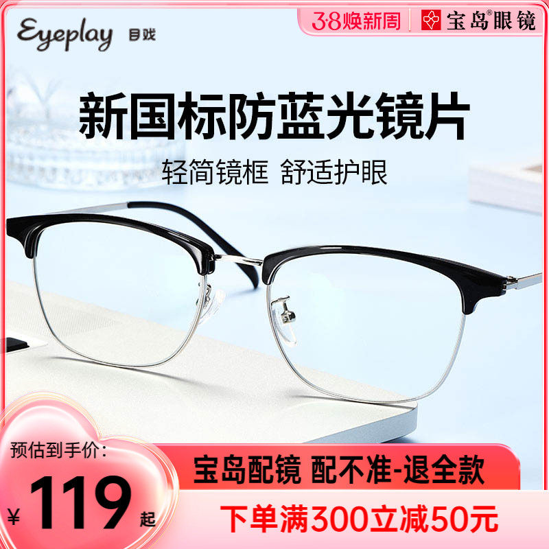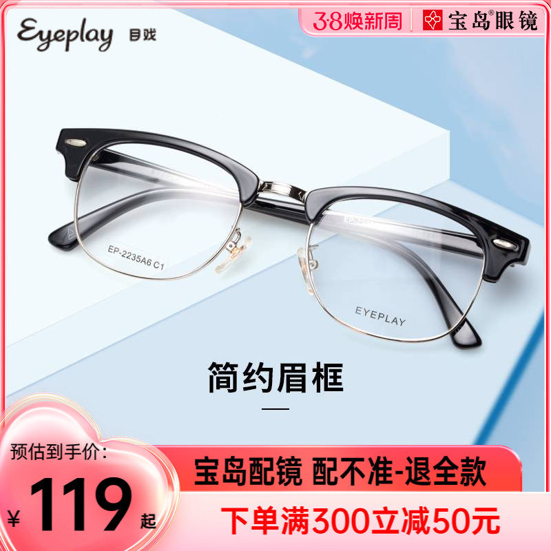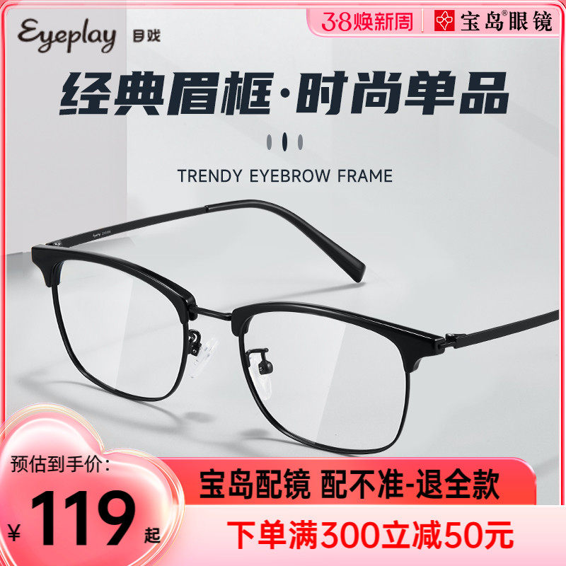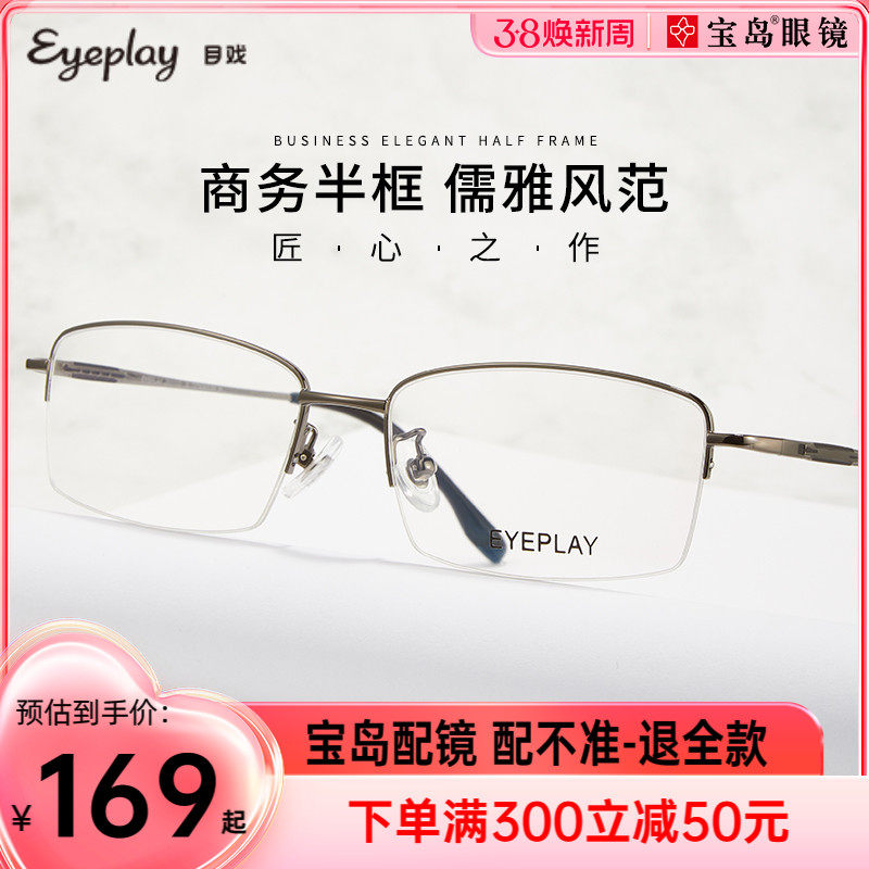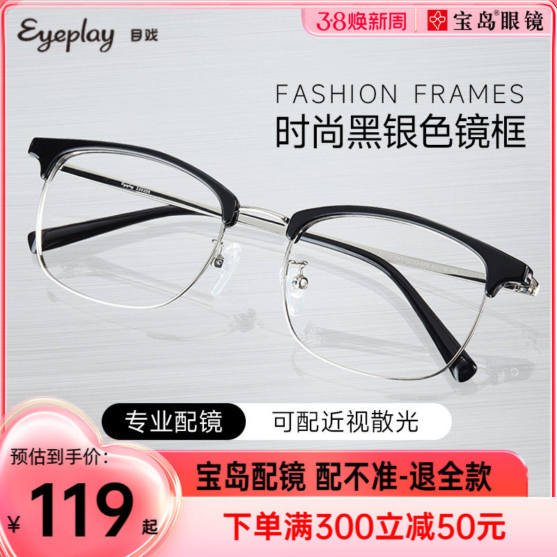 目戏半框近视眼镜架男款大框网上配镜可配度数散光防蓝光镜片宝岛