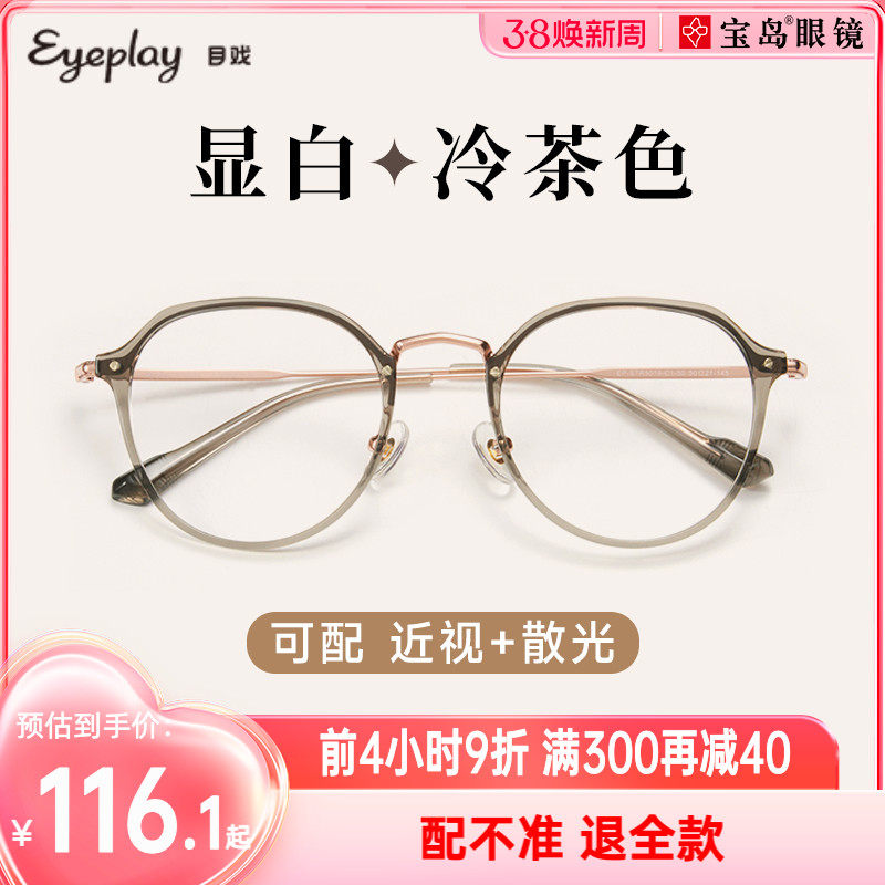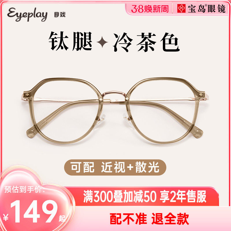 目戏冷茶色显白近视眼镜女可配防蓝光度数眼镜框镜架钛合金镜腿