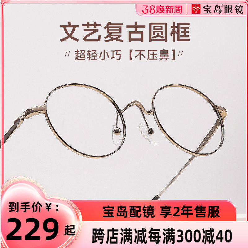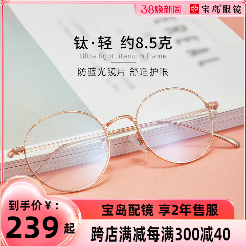 JOJO韩系文艺眼镜近视女款可配度数钛合金显脸小防蓝光镜片10064