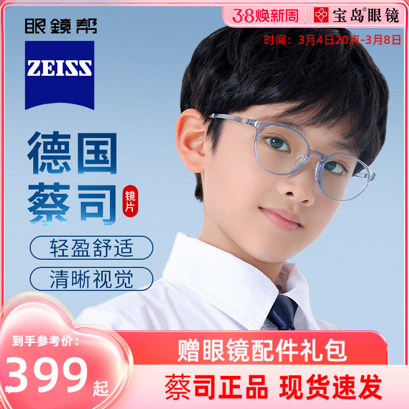 蔡司眼镜帮儿童平光佳锐防蓝光镜片手机电脑男女护眼小孩眼镜框架