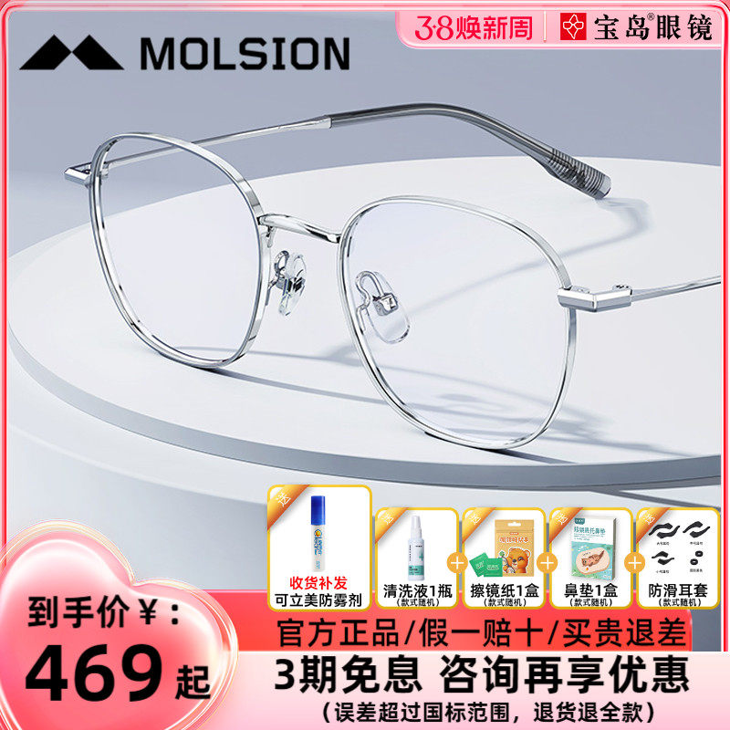 陌森眼镜肖战同款复古小框近视眼镜框可配防蓝光度数镜片MJ7235
