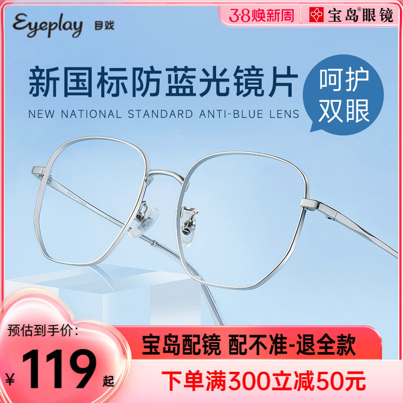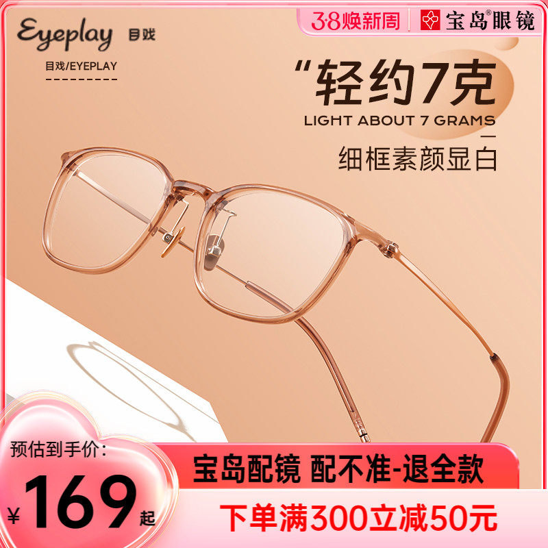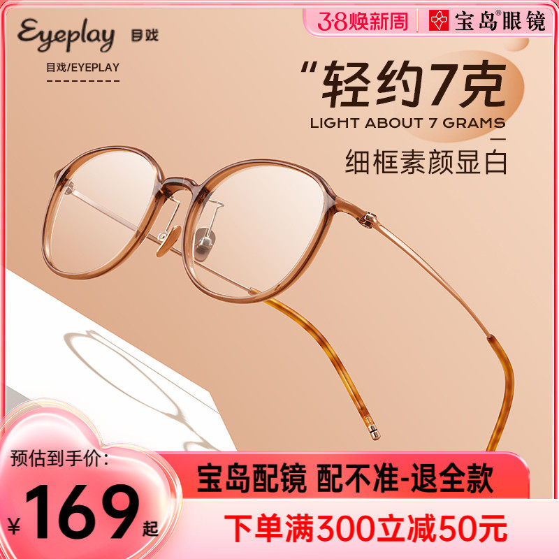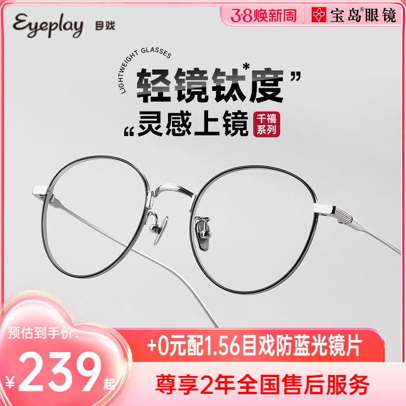 目戏超轻近视眼镜架男士款钛合金镜腿可配度数防蓝光镜片宝岛1022