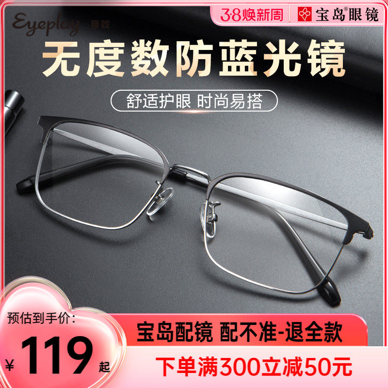 目戏无度数眼镜男士商务半框护目学生看手机电脑平光防蓝光眼镜
