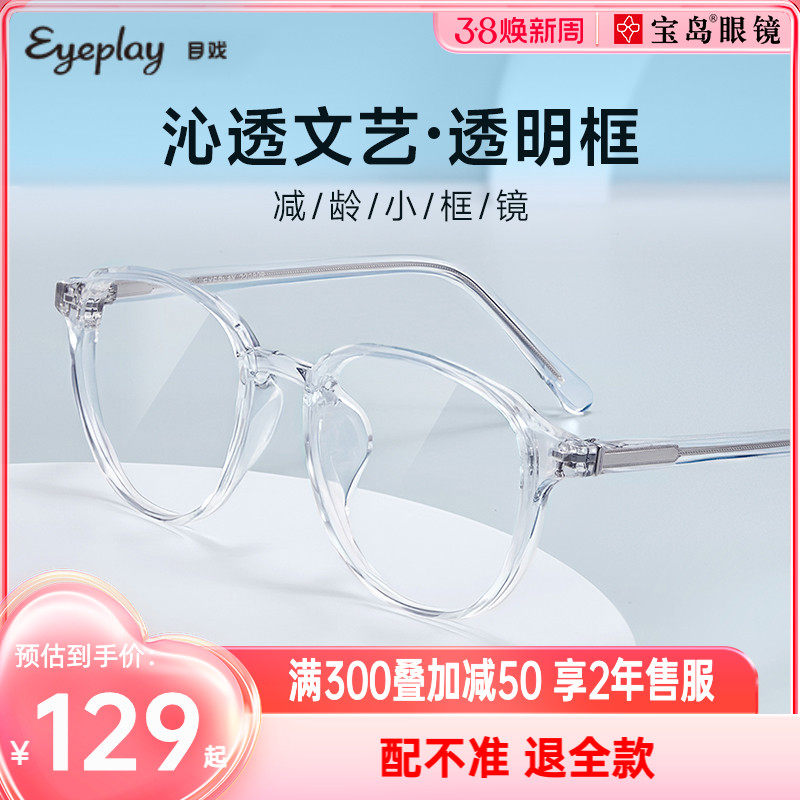 目戏透明框系列素颜眼镜女韩版潮TR小框防蓝光可配高度数近视1048