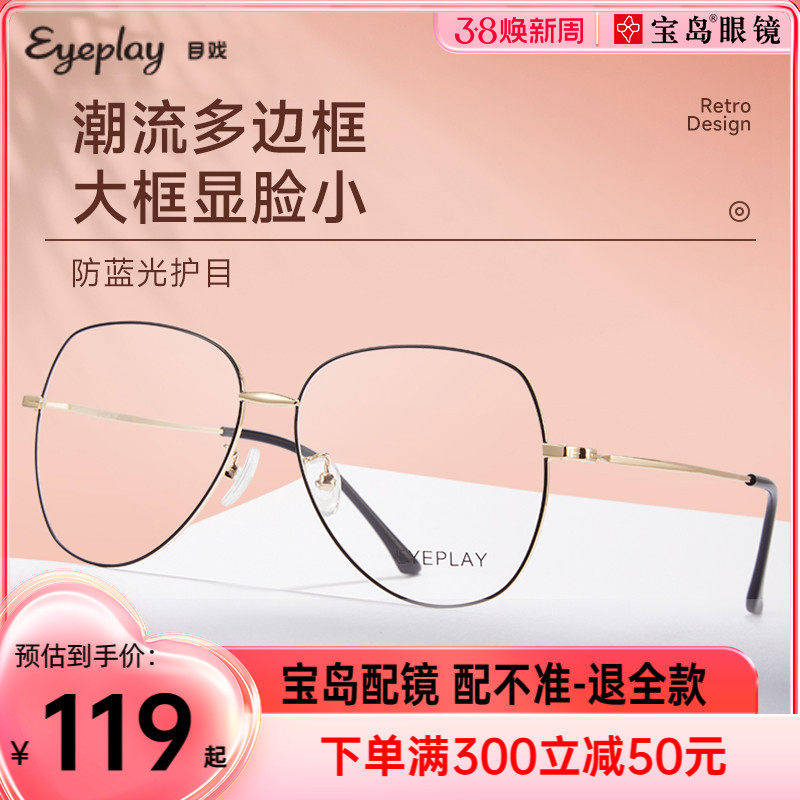 目戏近视眼镜女大框显脸小可配防蓝光度数配眼镜框眼睛镜架男宝岛