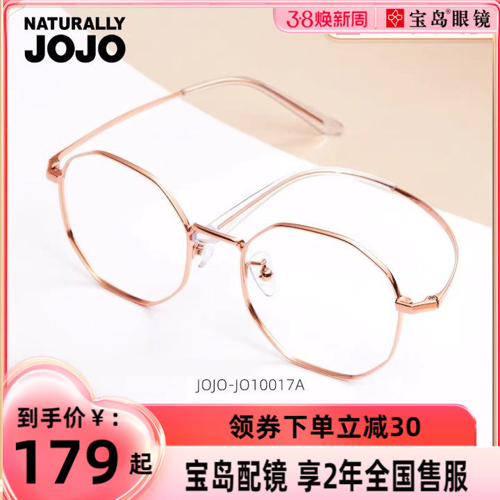 JOJO近视眼镜女可配度数玫瑰金2023新款镜框宝岛防蓝光镜片10017A