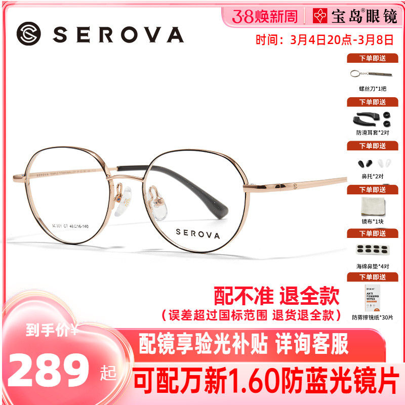 千禧系列 目戏钛合金镜腿近视眼镜可配度数可选防蓝光宝岛1110