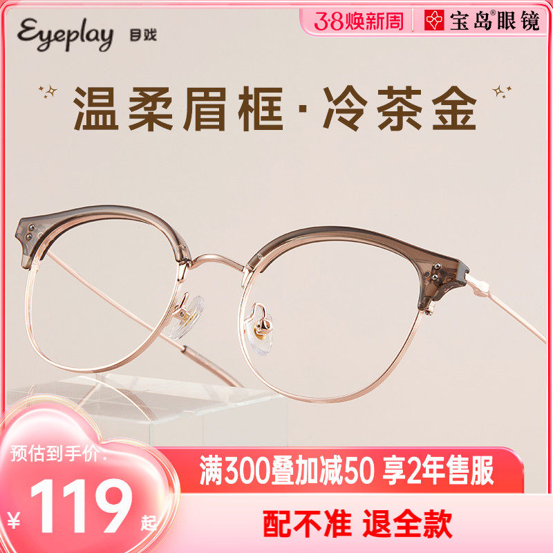 目戏冷茶色韩系素颜高级感半框眼镜近视可配度数女防蓝光宝岛5022