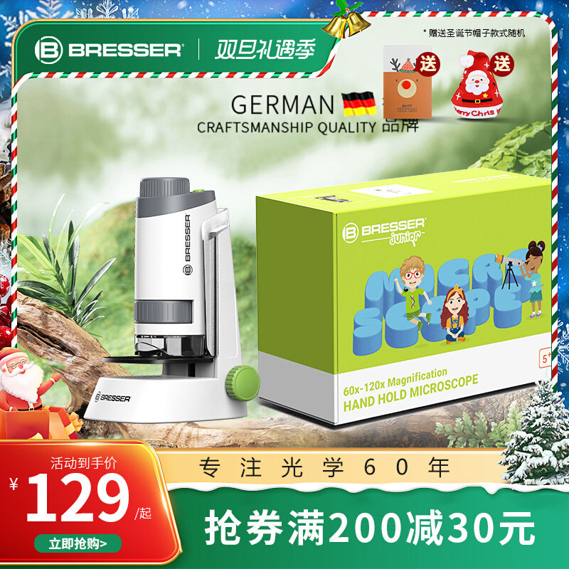 德国Bresser儿童手持显微镜科学实验小学生专用便携光学益智玩具