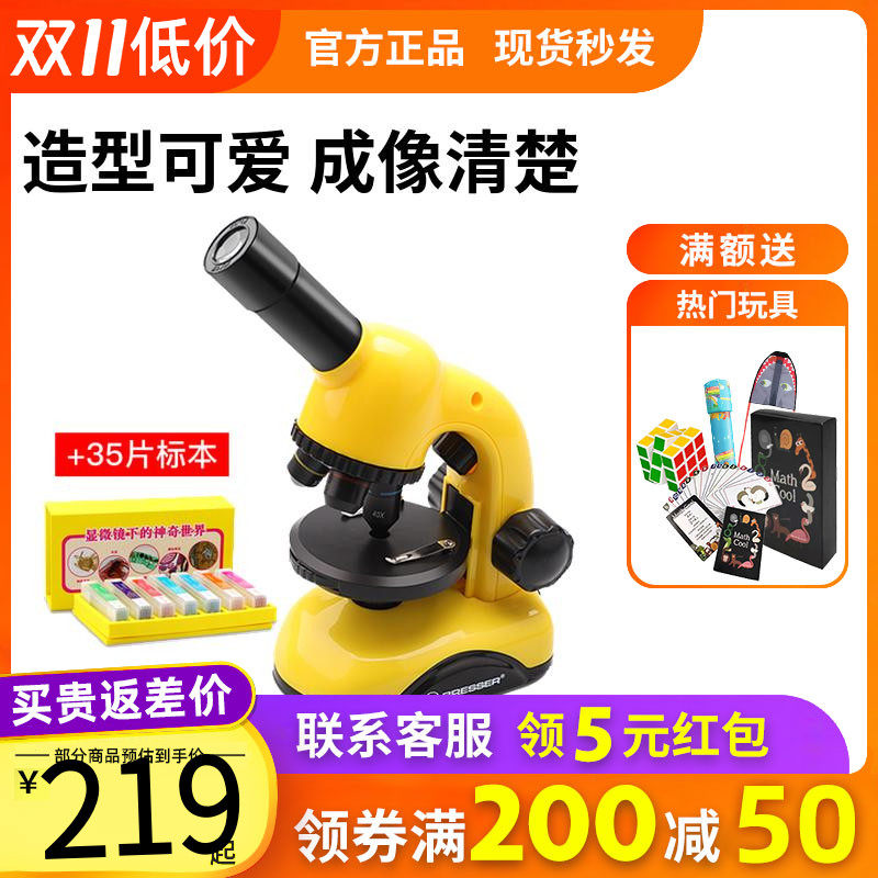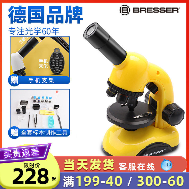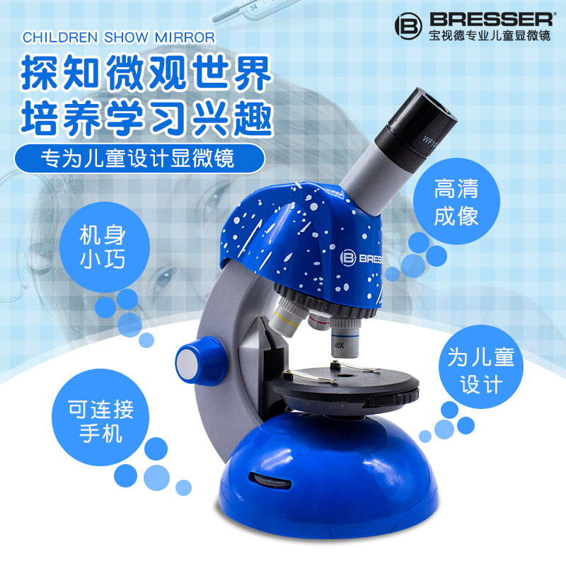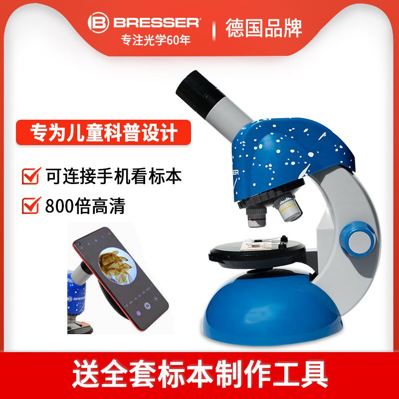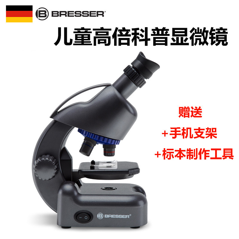 德国Bresser儿童显微镜科学幼儿园小学生男孩女孩专用高清科学实验套装可看细菌生物标本生日礼物玩具