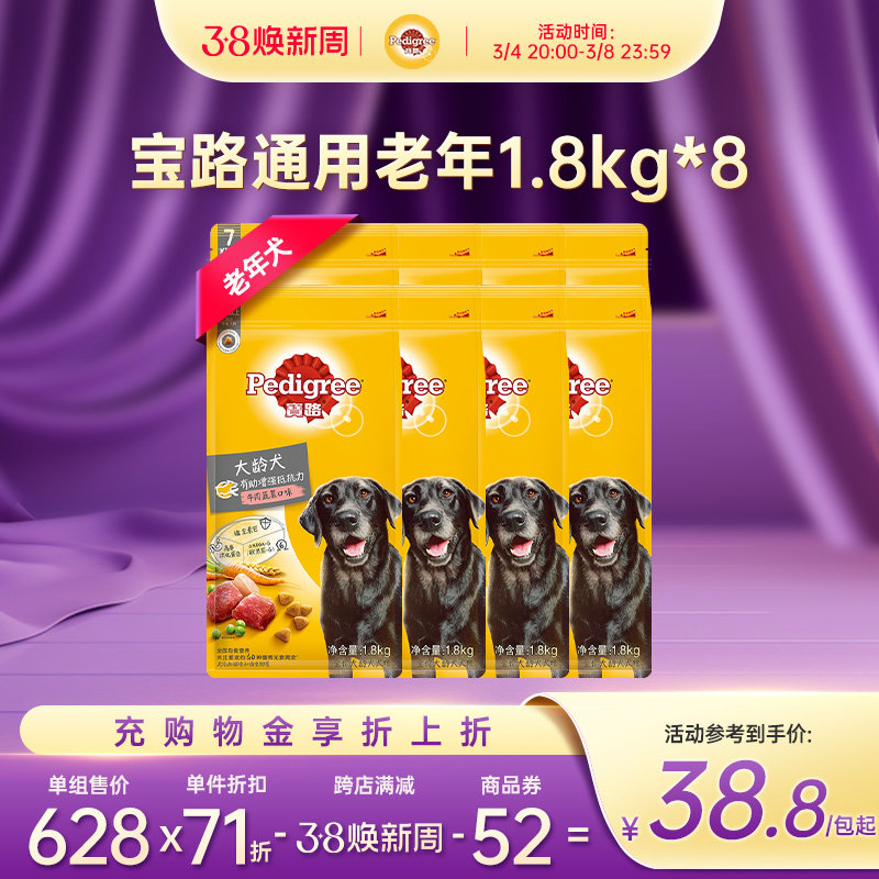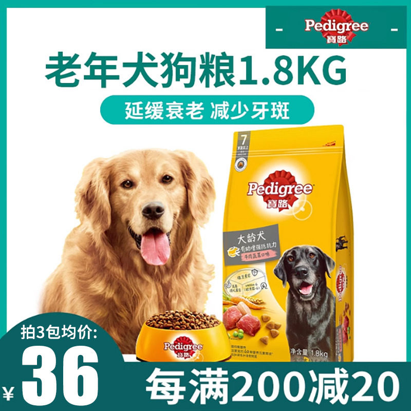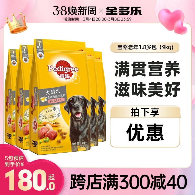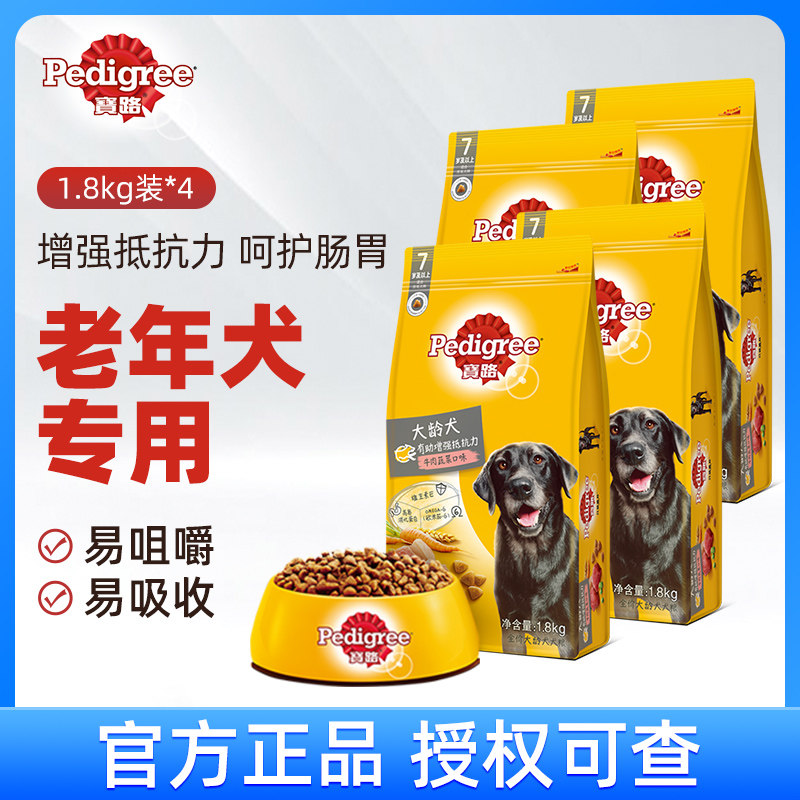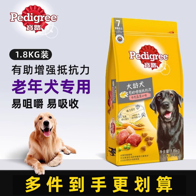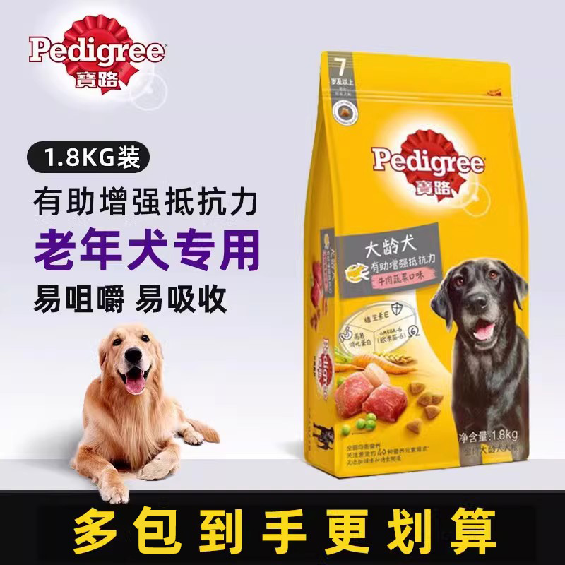 宝路狗粮老年犬粮1.8kg老龄犬通用比熊泰迪金毛狗粮大龄犬专用粮