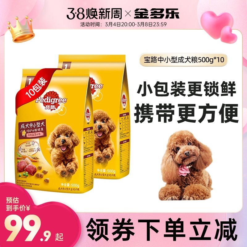 宝路狗粮10斤成犬粮泰迪柯基中小型犬通用型官方正品小包500g*10