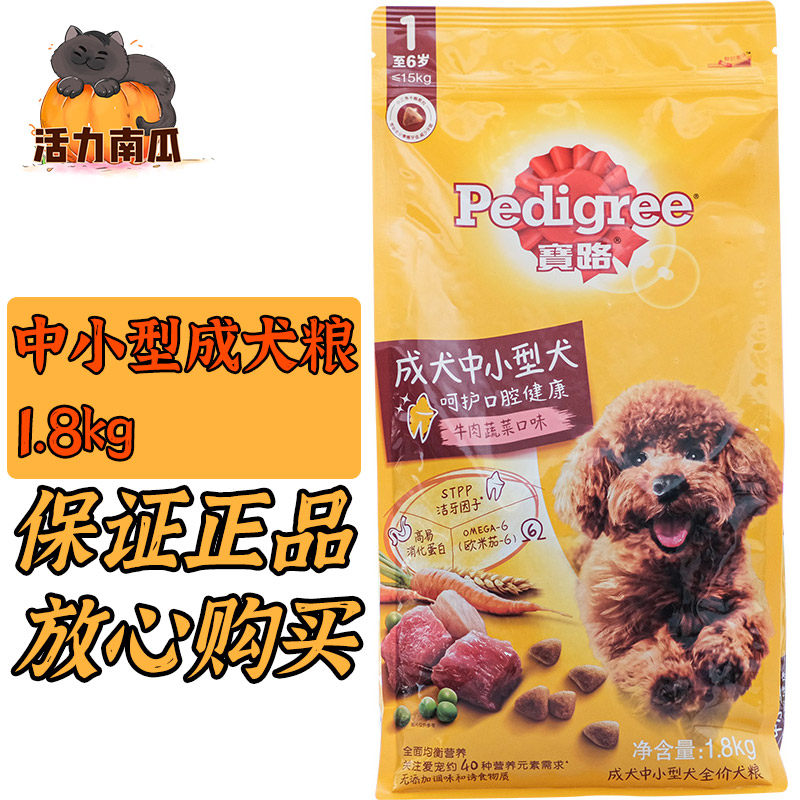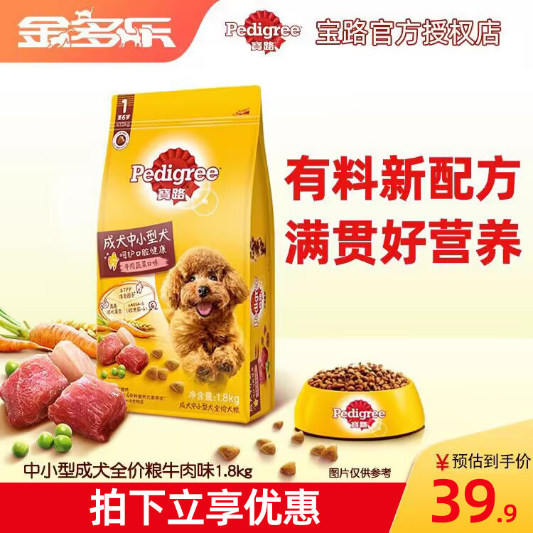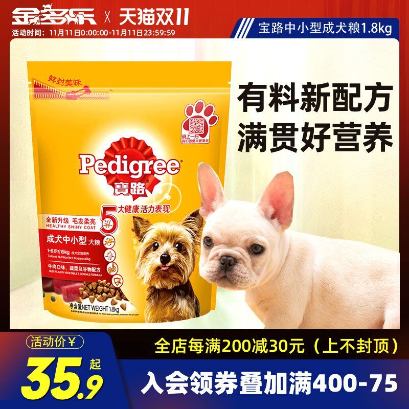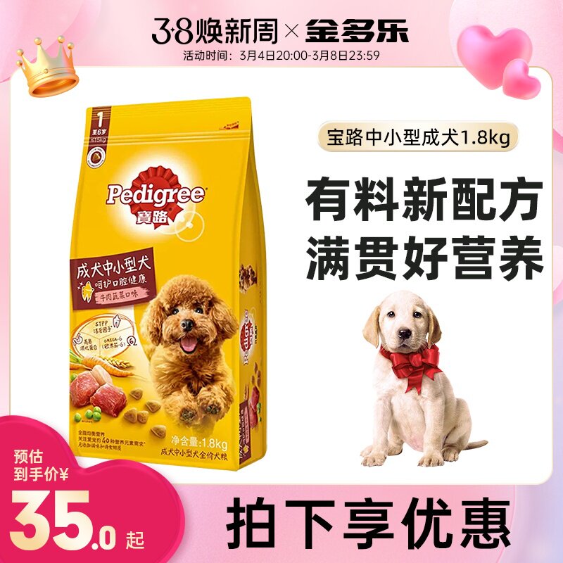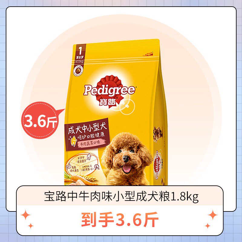 宝路狗粮1.8kg中小型通用全价狗粮牛肉味鸡肉味犬粮泰迪贵宾博美