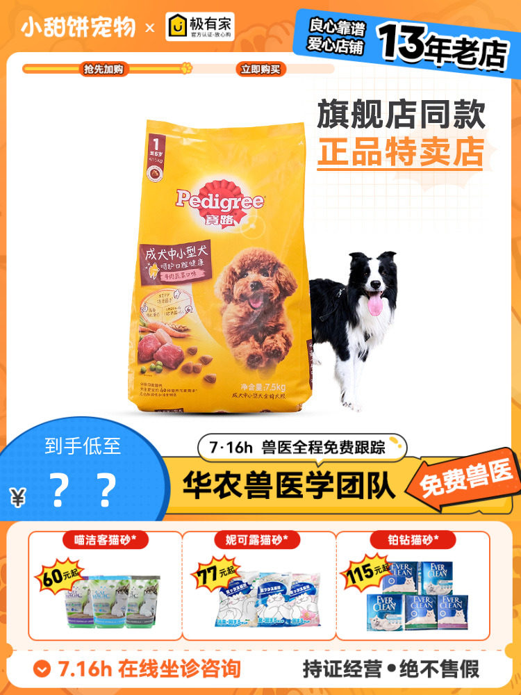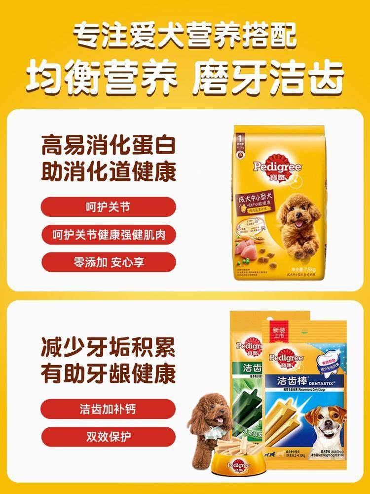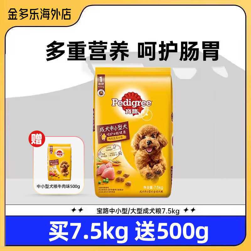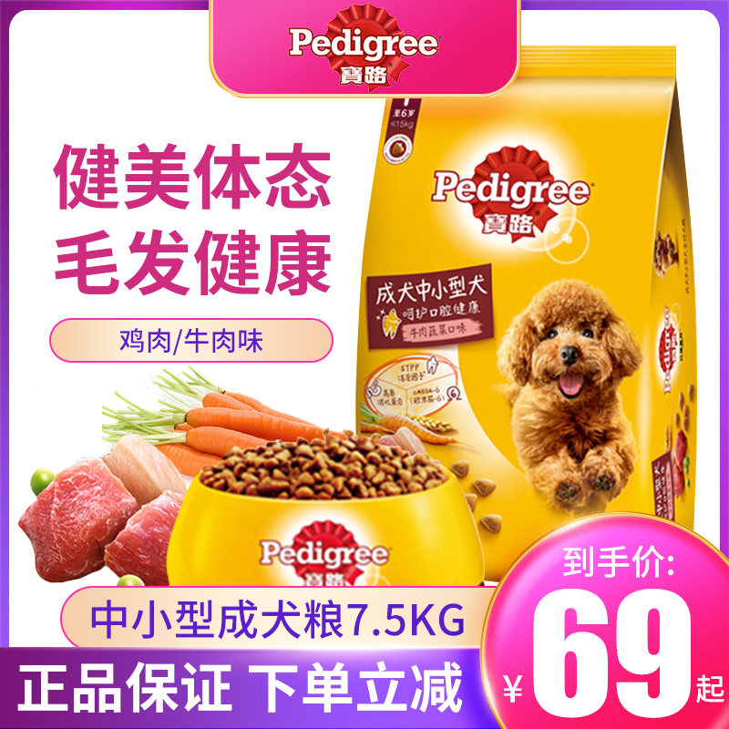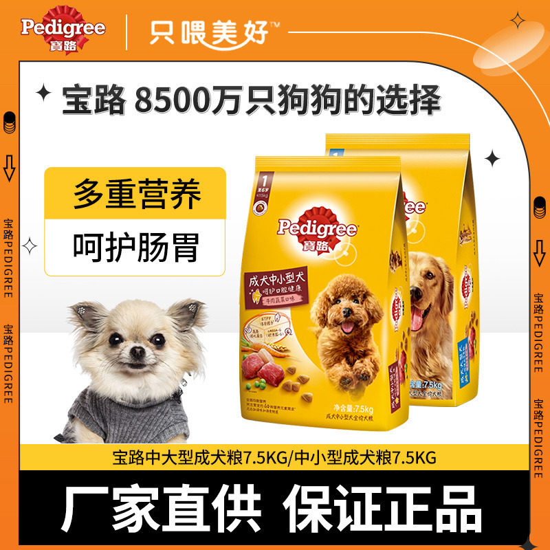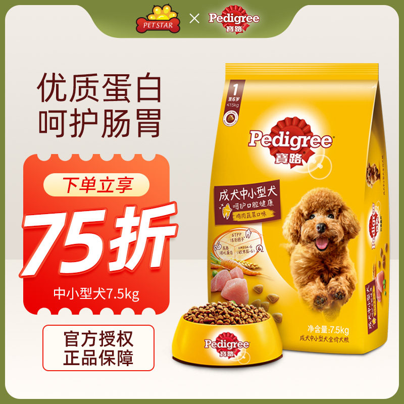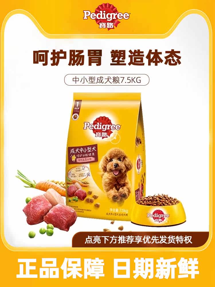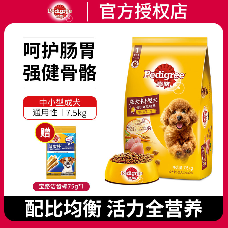 宝路Pedigree成犬粮7.5kg中小通用型全价狗粮15斤狗干粮非10kg