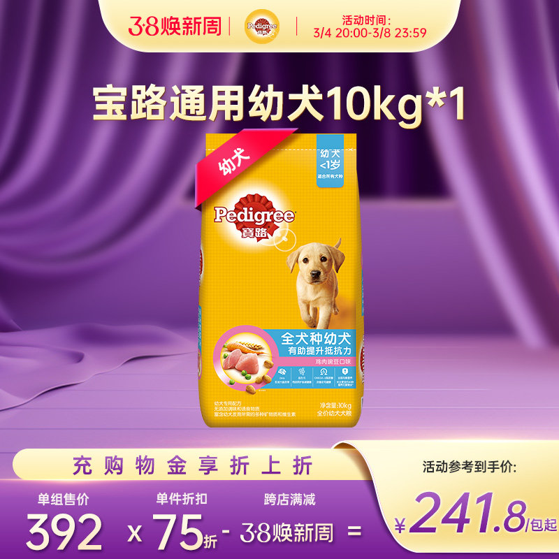 宝路狗粮幼犬粮10kg泰迪柯基中犬金毛幼犬通用型全犬种奶糕粮20斤