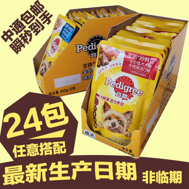 24袋宝路妙鲜包成犬幼犬100g*24包狗零食通用牛肉湿粮狗粮包邮