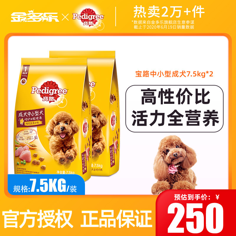 宝路狗粮7.5kg公斤小中型犬成犬通用旗舰店泰迪主粮2包正品旗舰店