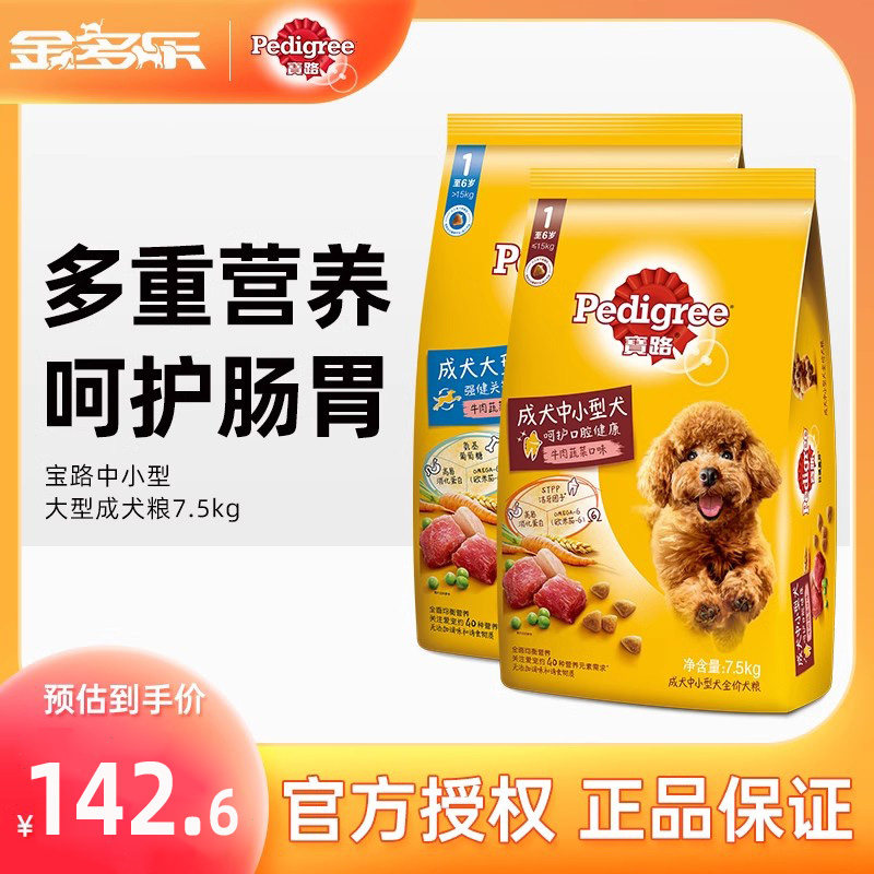 宝路狗粮7.5kg中小型通用成犬泰迪柯基牛肉大型犬全价粮官方正品