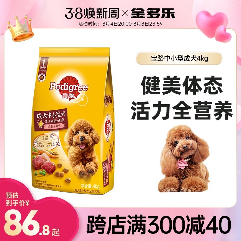 官方宝路狗粮成犬粮4kg贵宾泰迪中小型犬通用型比熊博美拉布拉多
