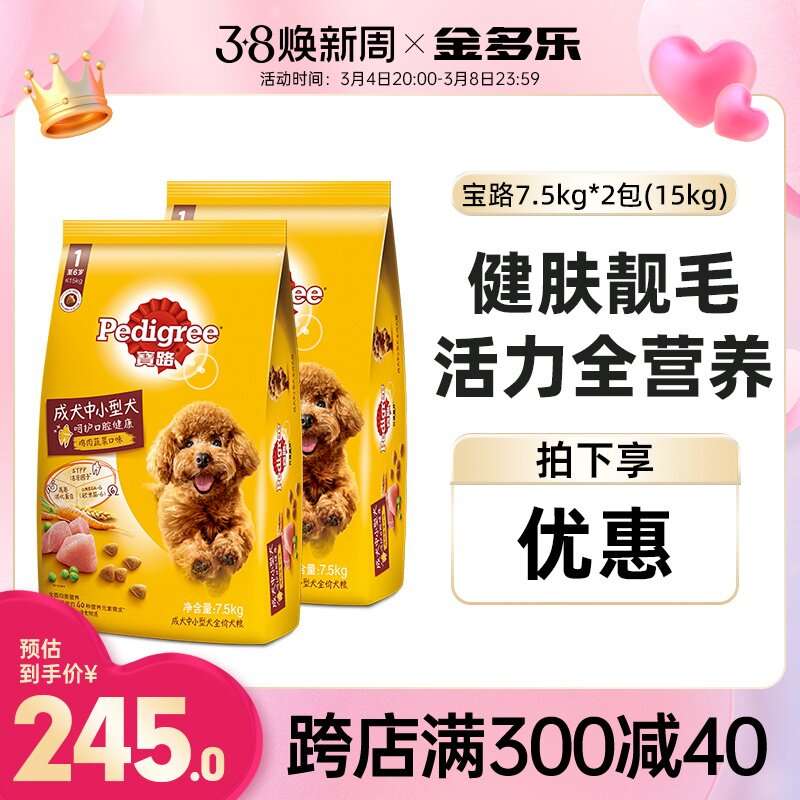 宝路成犬狗粮15斤中小型犬通用全价金毛泰迪牛肉鸡肉味犬粮7.5kg