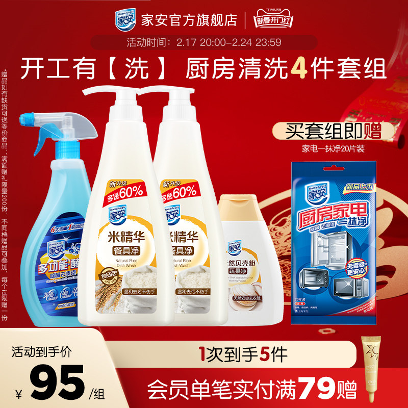 家安厨房清洁去味组合米精华洗洁精清洁剂贝壳粉除菌去渍泡