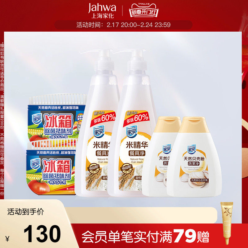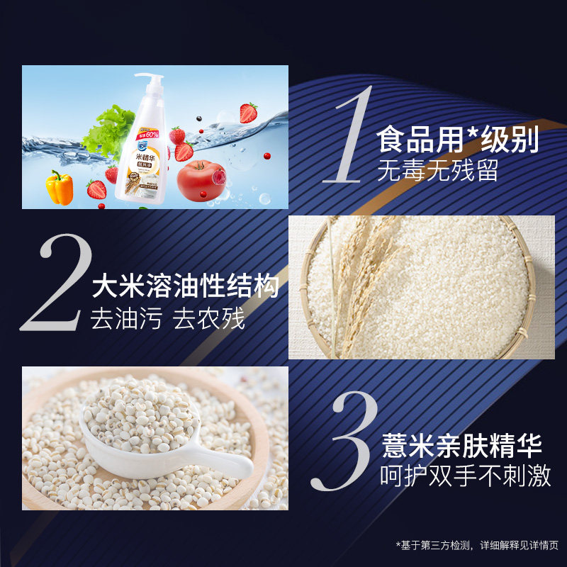 家安洗洁精米精华餐具净752g*3瓶清洁剂不伤手去农残100ml*2