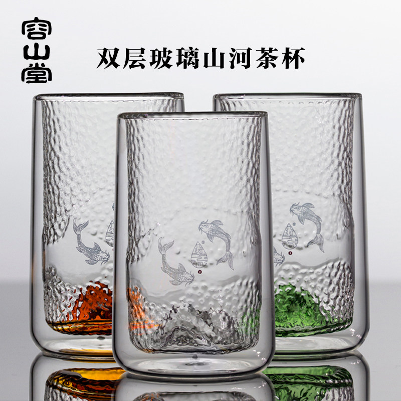 容山堂双层玻璃水杯防烫绿茶杯山峦茶杯保温泡茶杯单杯隔热办公杯