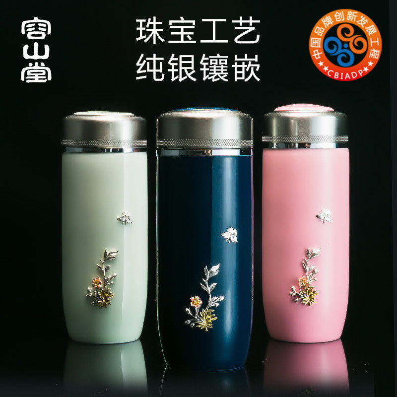 容山堂银镶嵌陶瓷保温杯双层不锈钢内胆男女古风中国风过滤泡茶