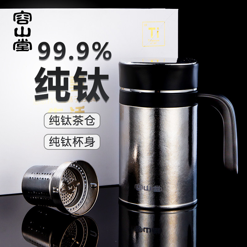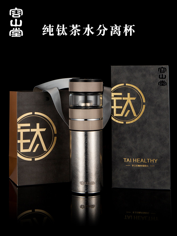 容山堂纯钛保温杯双层钛茶杯茶水分离杯便携泡茶杯男女办公杯水杯