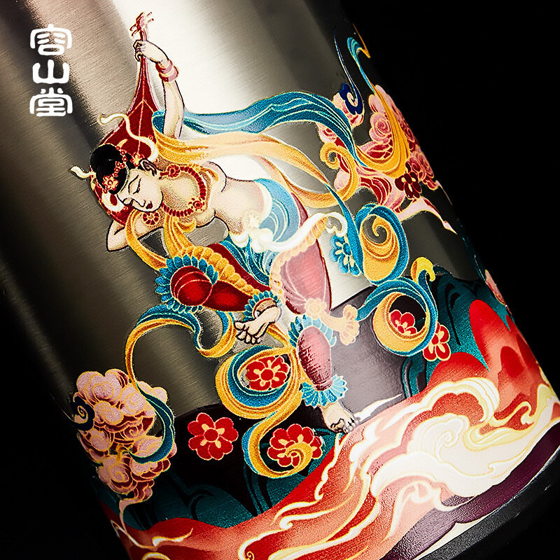 极速容山堂敦煌古风双层不锈钢保温杯故宫中国风泡茶温度显示男女