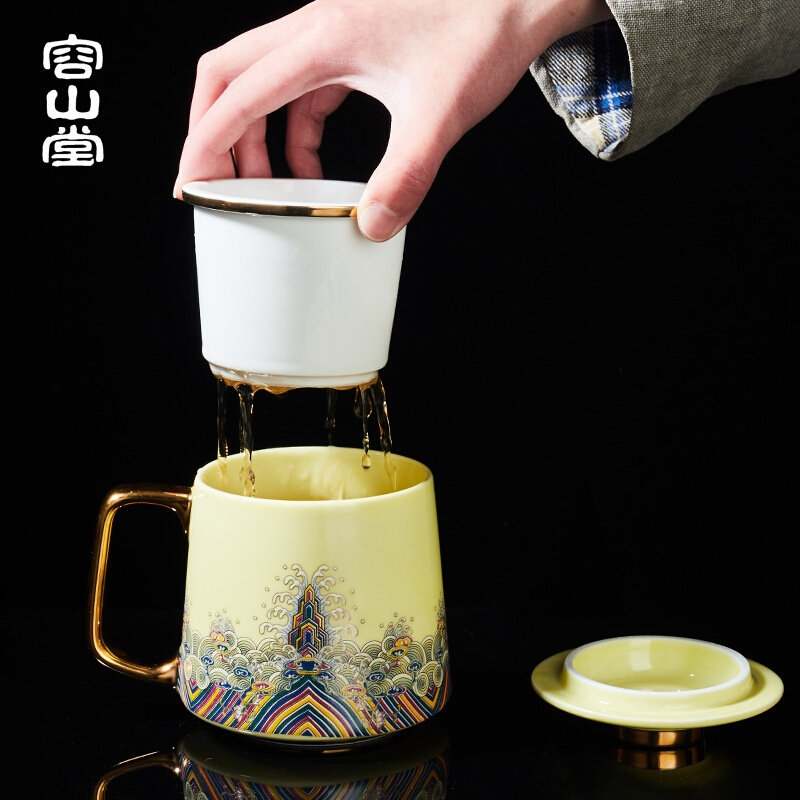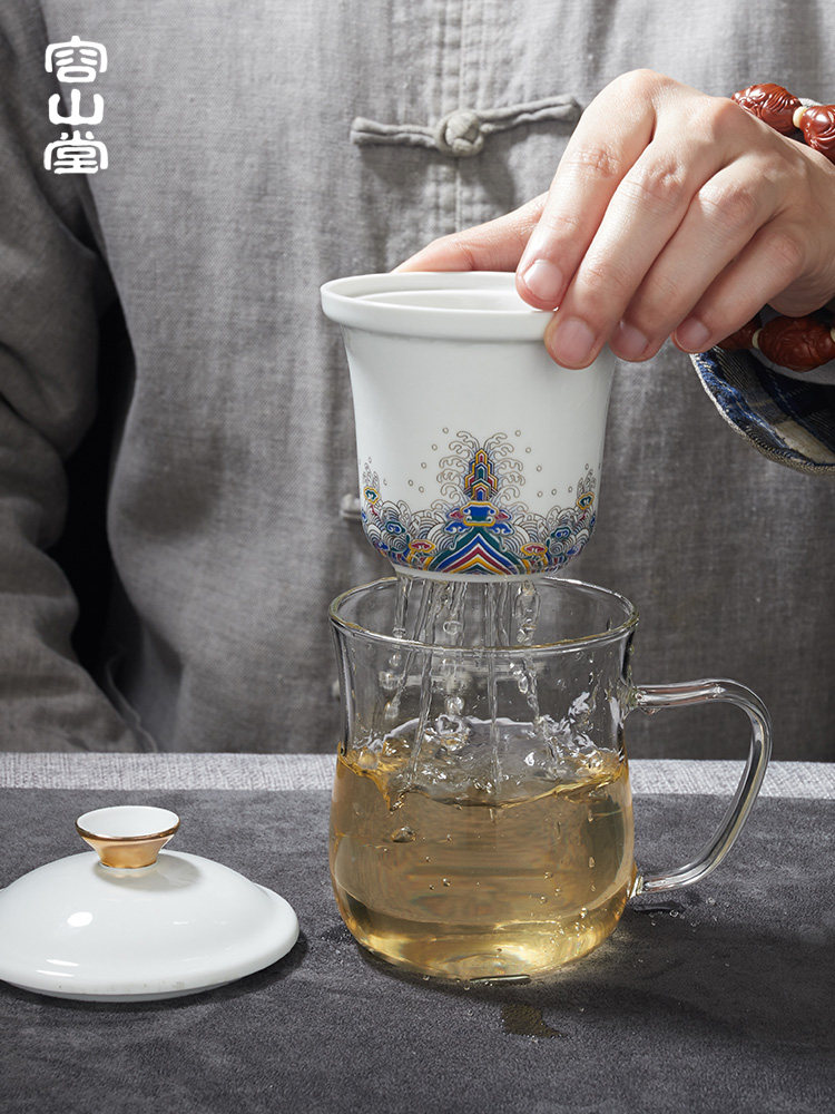 容山堂玻璃茶水分离泡茶杯故宫水杯绿茶办公会议保温陶瓷过滤内胆