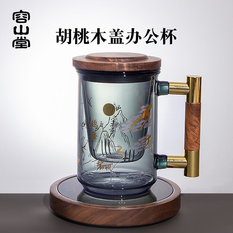 容山堂耐热玻璃办公杯男士茶水分离杯保温泡茶水杯养生炉保温杯垫