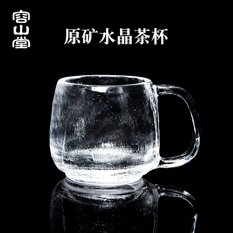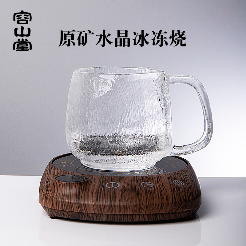 容山堂原矿水晶茶杯大号泡茶杯办公室水杯煮茶杯保温加热底座套装