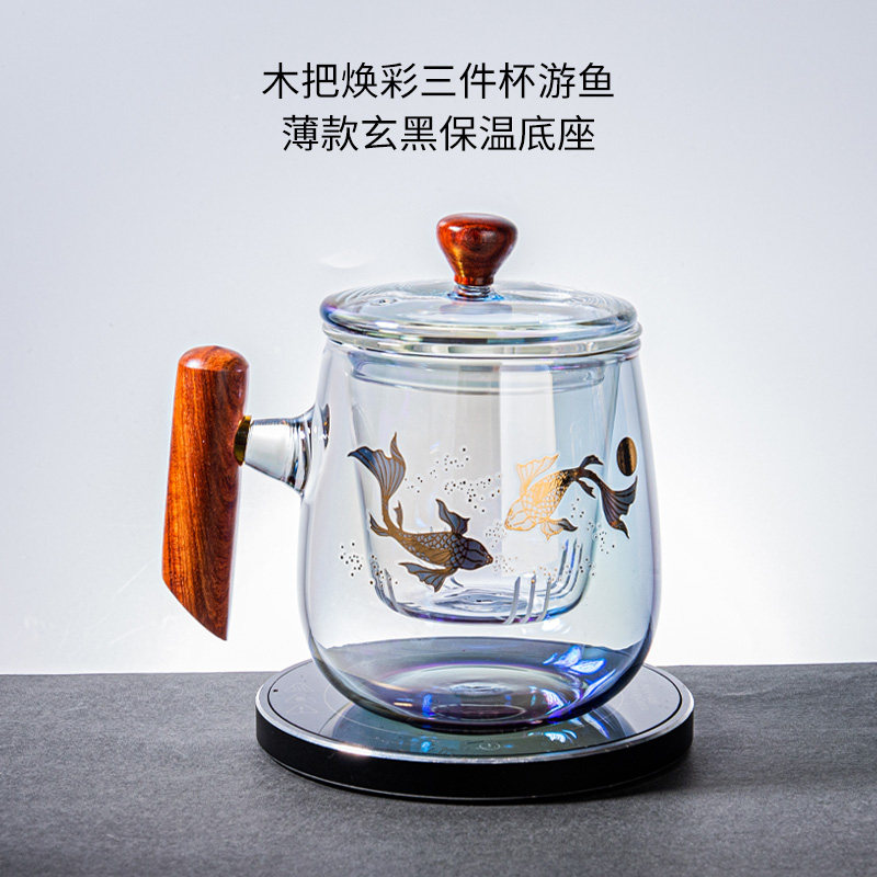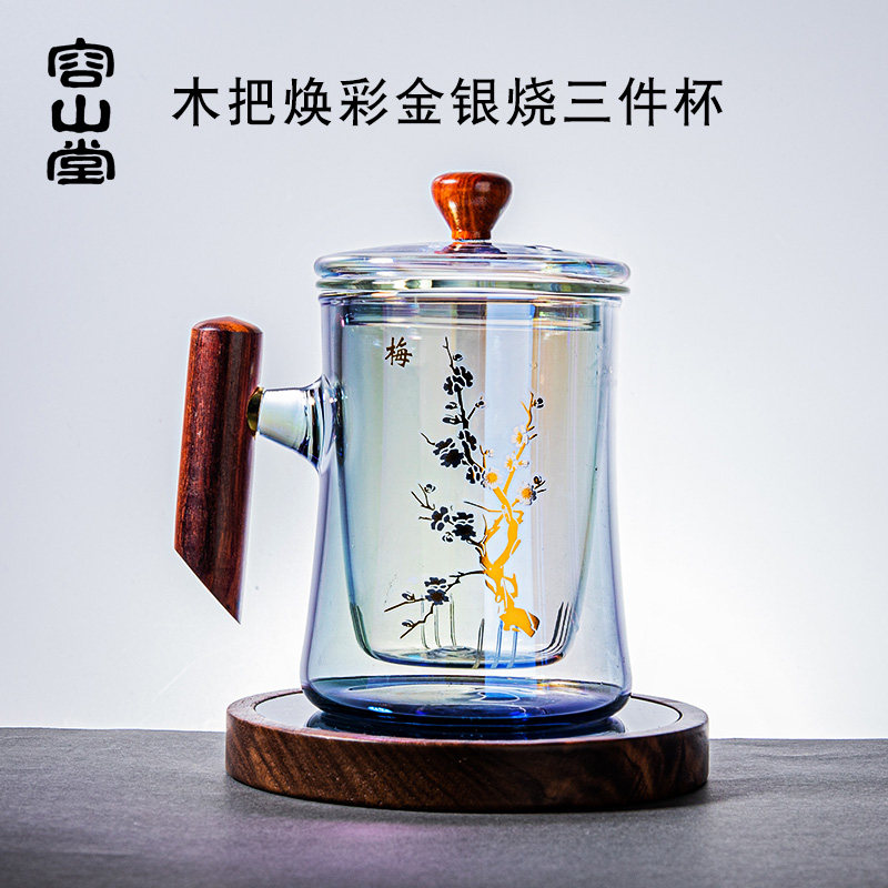 定制容山堂金银烧玻璃茶水分离杯带盖大号办公杯家用水杯保温泡茶