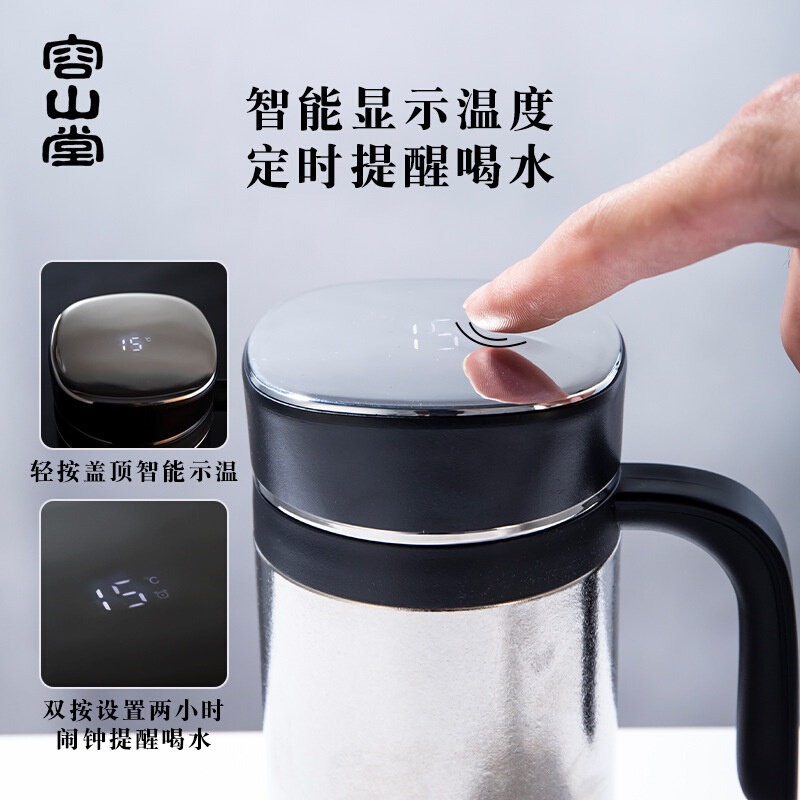 极速容山堂纯钛办公杯带手柄保温杯茶水分离泡茶杯办公室温度显示