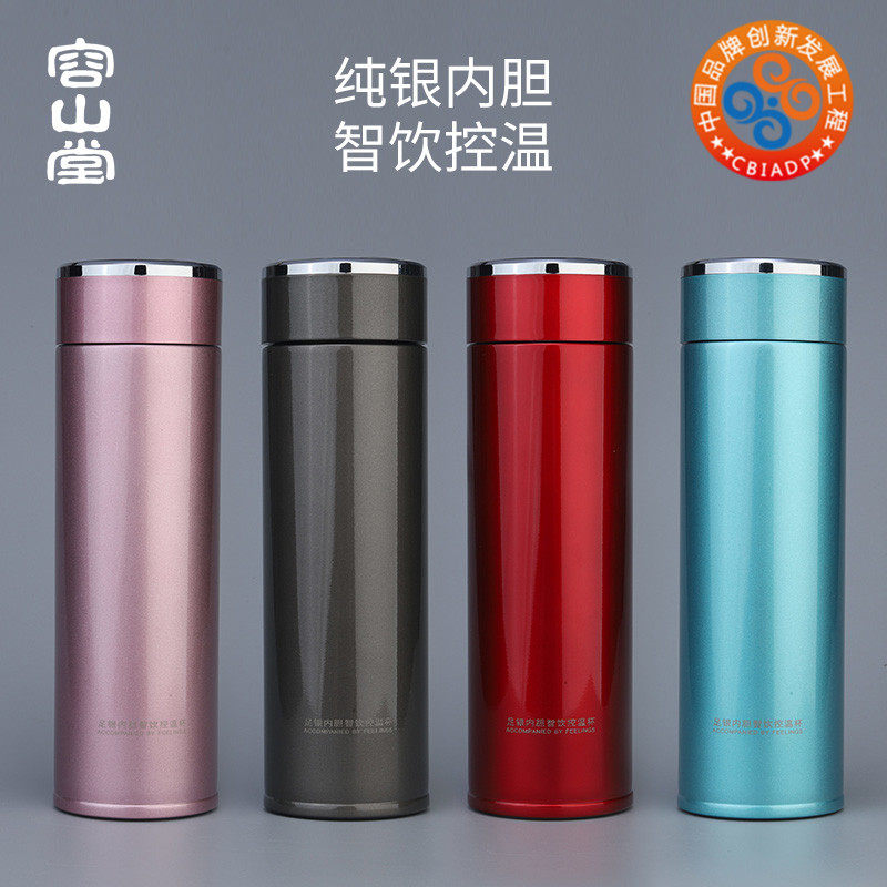 容山堂银尚银内胆保温杯男女泡茶杯简约智能快速降温不锈钢水杯