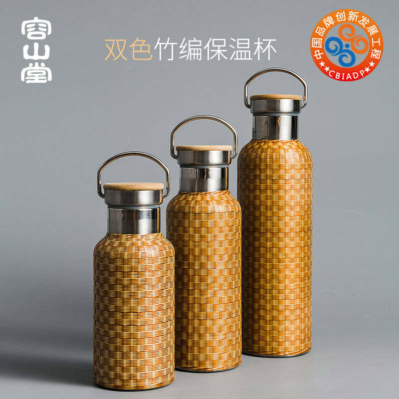 容山堂手工竹丝保温杯不锈钢大小号保温壶热水瓶中式旅行功夫茶具