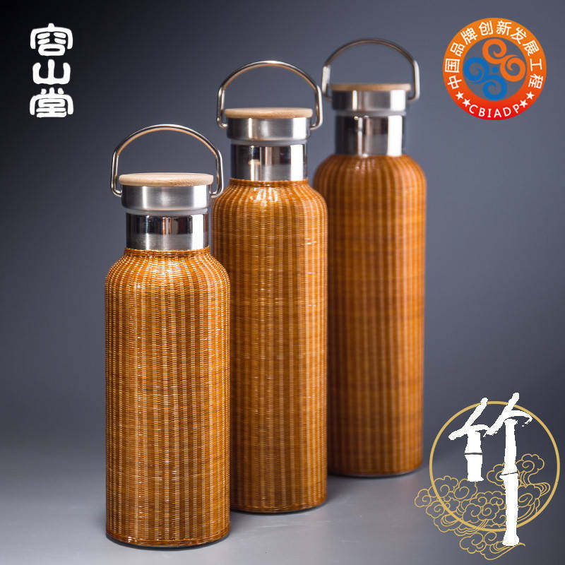 容山堂手工竹编保温杯热水瓶保温壶双层不锈钢大便携户外旅行古风