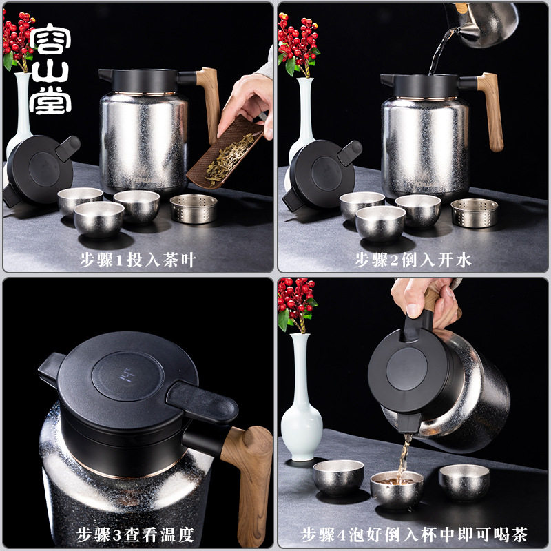 容山堂纯钛焖茶壶老白茶焖泡壶家用茶水分离保温壶水壶钛茶杯套装