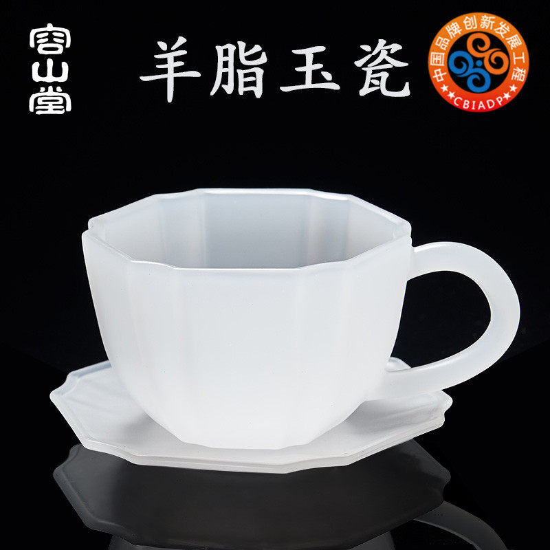 容山堂羊脂玉瓷咖啡杯垫套装中国风水杯茶杯牛奶马克杯琉璃带把手