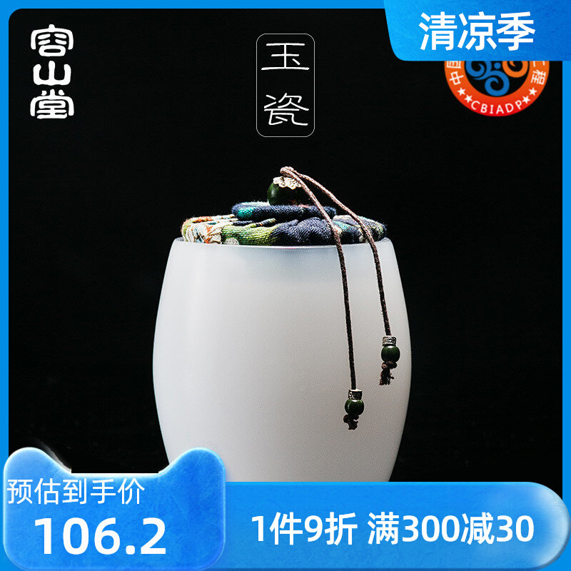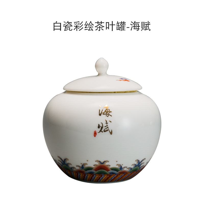 容山堂瓷艺 白瓷彩绘茶叶罐 迷你小号便携普洱密封罐储物罐醒茶罐