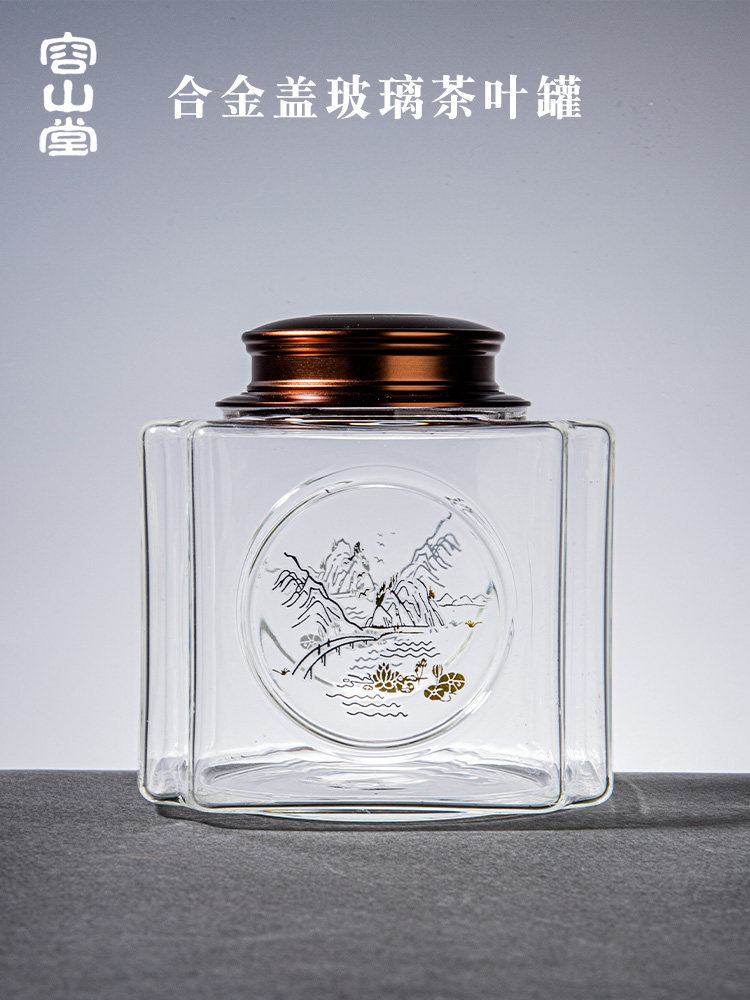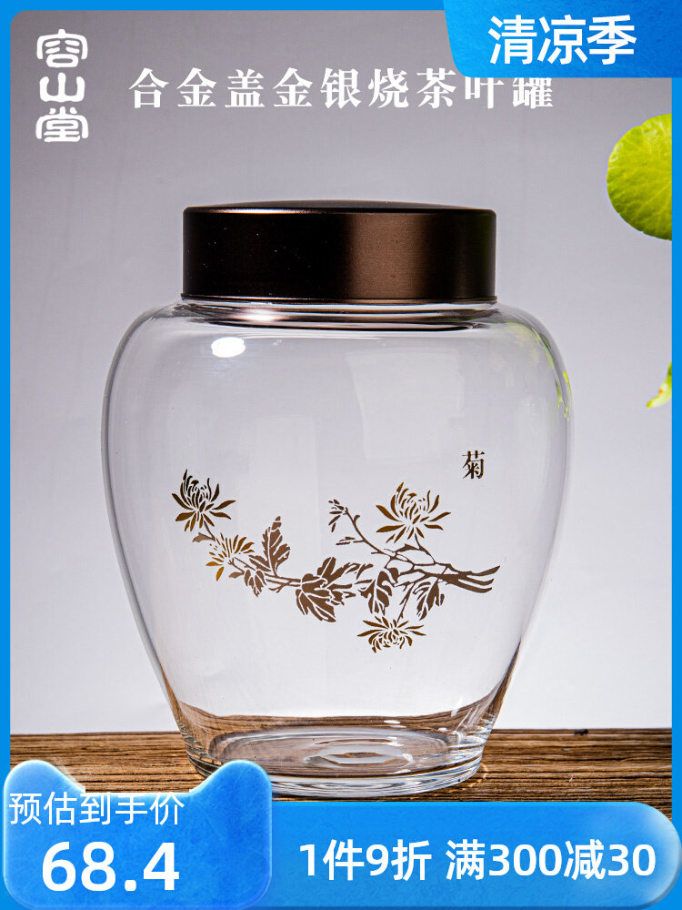 定制容山堂焕彩玻璃茶叶罐大容量家用密封罐储存罐合金盖透明收纳