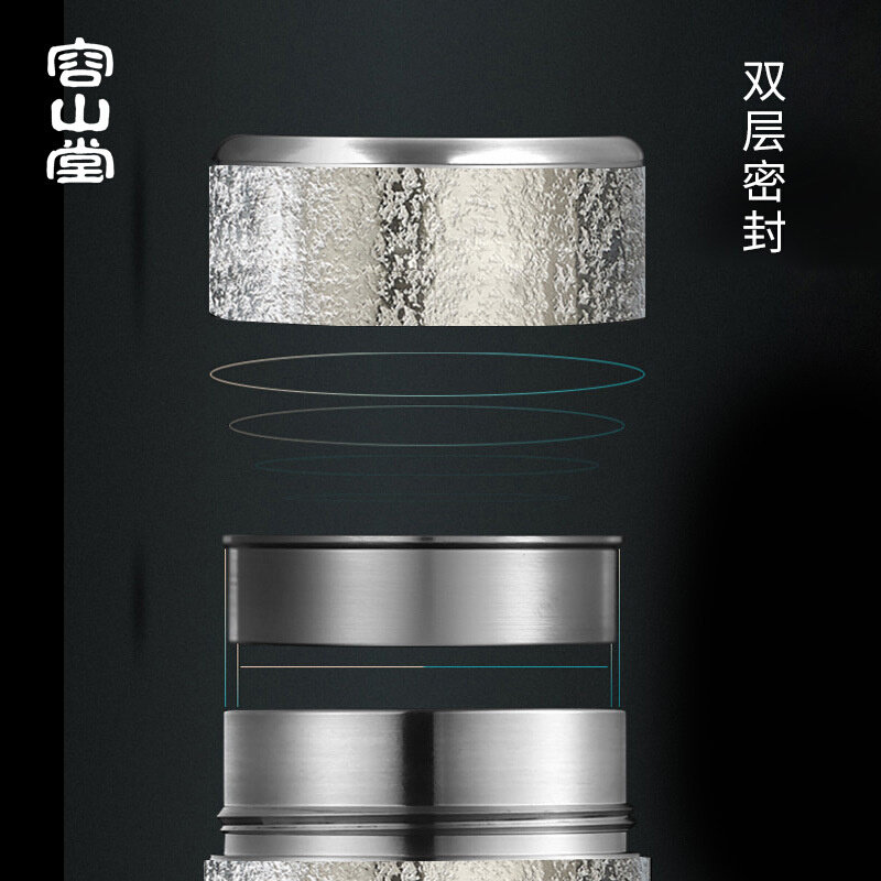 定制容山堂茗皓锡茶叶罐锤目纹密封罐防潮储茶锡罐旅行便携锡茶仓