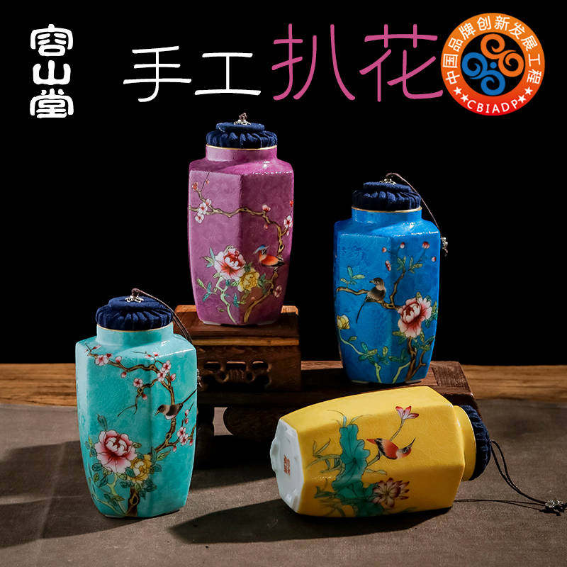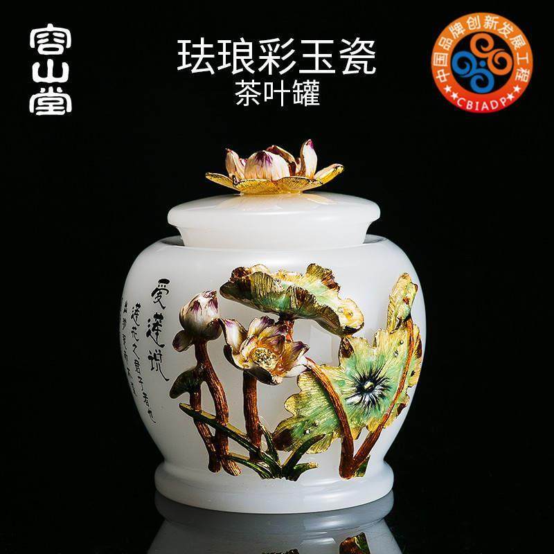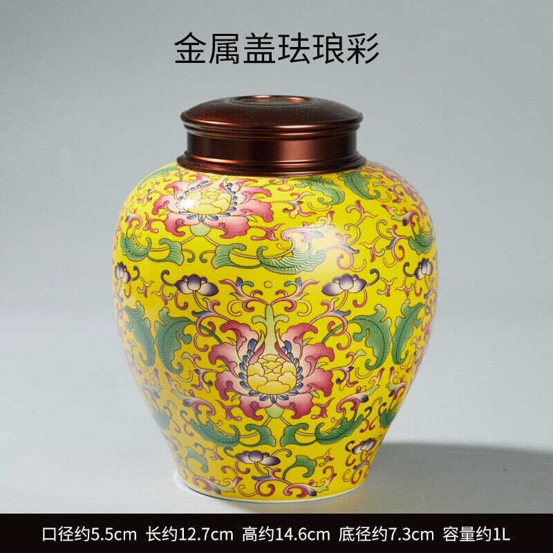 高档容山陶瓷珐号琅彩茶叶罐金属盖大普洱密封用罐堂家储物罐存茶