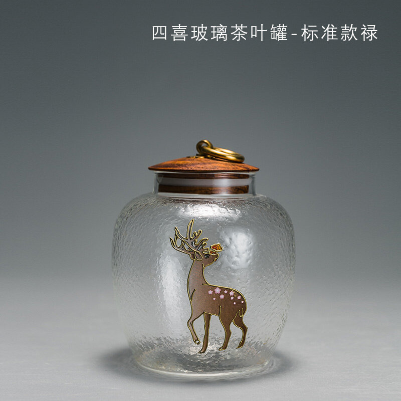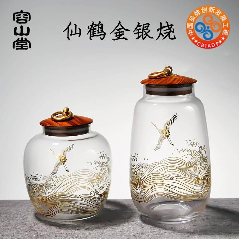 容山堂金银烧玻璃茶叶罐金属扣密封储物罐实木盖大小号茶具白绿茶