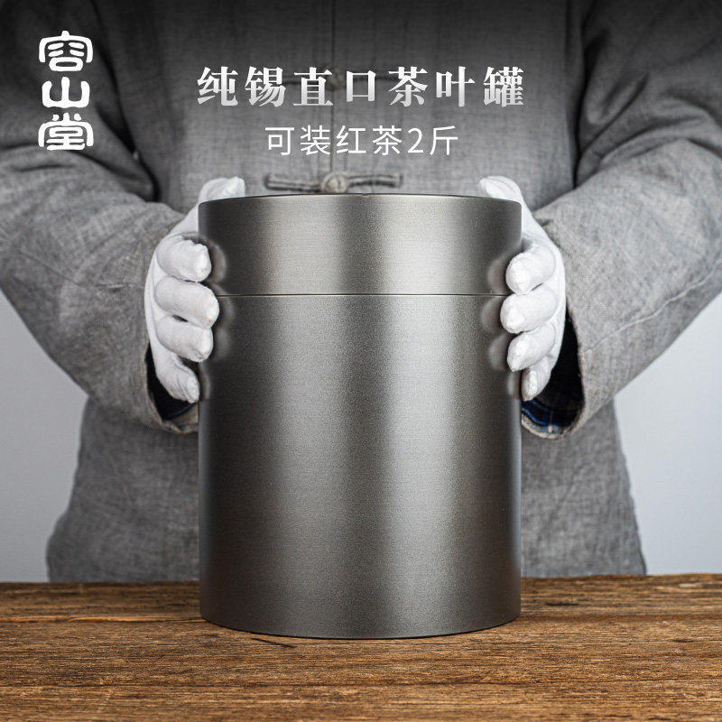 容山堂锡罐大小号密封罐普洱黑茶家用收纳茶盒便携金属茶仓礼盒